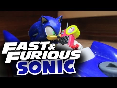The Sonic car is a wind up toy we purchased at Toys R' Us. Lilly and I actually were planning on making the hitting scene in just one shot. Well, needless to say our first film take completely missed Silver and drove on by into the bathroom sink, LOL!